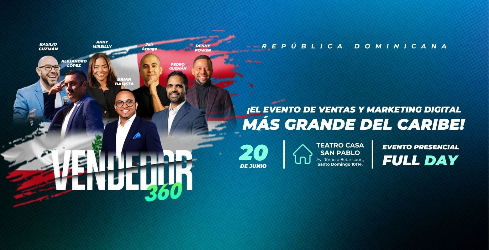 En un mundo donde la competencia es feroz y el cambio constante, Vendedor 360 nace como el evento de Ventas, liderazgo, negocios y marketing digital más impactante del Caribe donde se congregarán más de mil emprendedores, dueños de negocios, equipos comerciales, agentes inmobiliarios, empresarios, marketeros, líderes comerciales y marcas visionarias. para elevar el potencial de los profesionales de ventas y líderes del nuevo siglo.